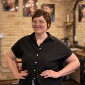 Kir has a dedication to embracing the uniqueness of each individual’s hair and specializes in crafting looks that are functional and stylish. They thrive on collaborating with guests, exploring new trends, and creating styles that feel authentically lived-in and comfortable. Kir also enjoys doing gender-affirming cuts and daring color projects, making them the perfect choice for anyone seeking a personalized experience.